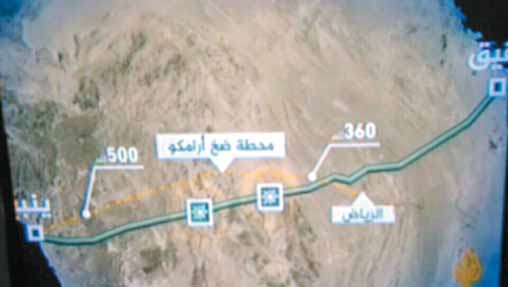 وذكرت القناة أنّ أحد الخطين ينقل سوائل الغاز الطبيعي من مرافق معالجة الغاز في منطقة شدقم، التي تبعد عن ينبع مسافة 1171 كيلومتراً، في حين أنّ خط الأنابيب الآخر، الممتد بطول 1200 كيلومتر، ينقل الزيت الخام من منطقة بقيق.