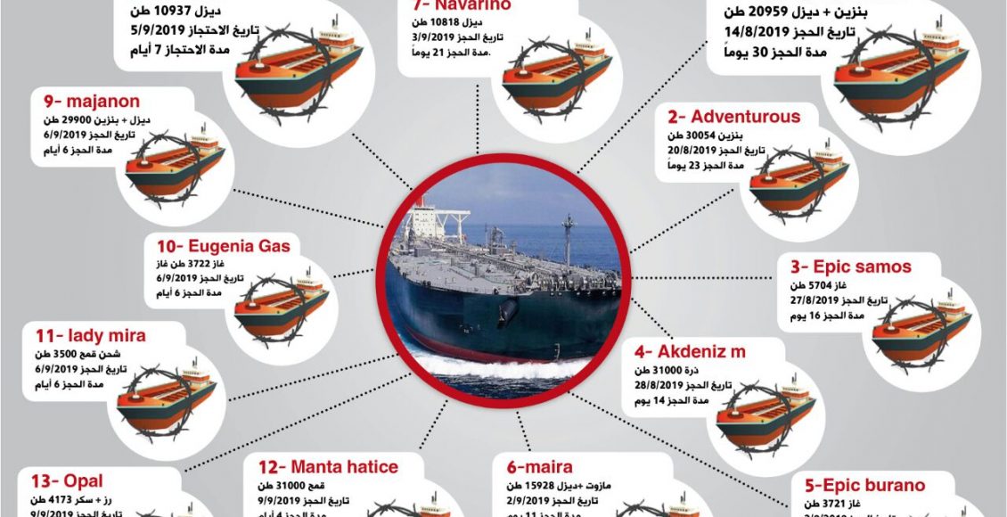 السفن المحتجزة امام ميناء جيزان حتى 12-9-2019