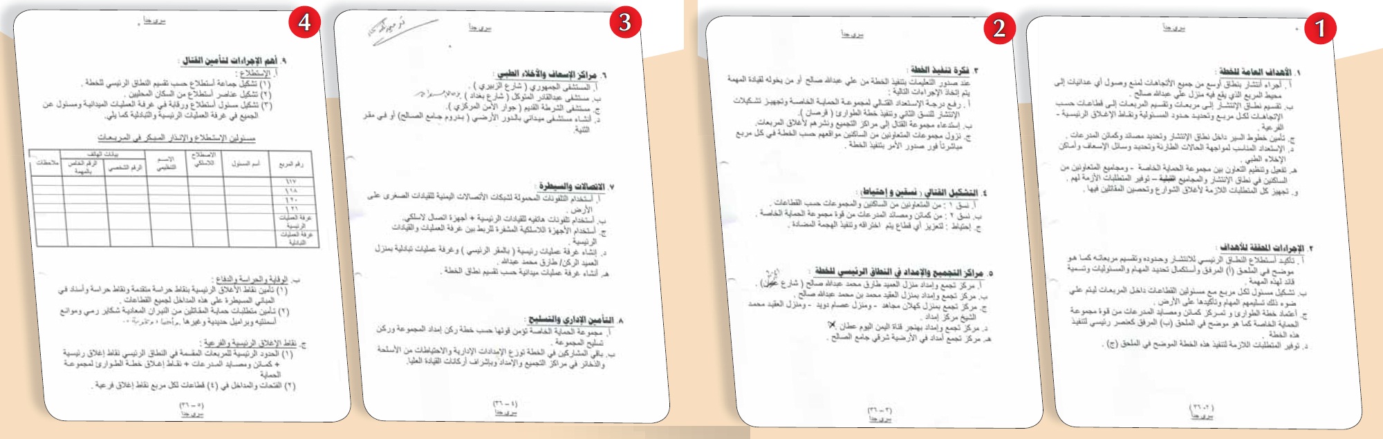* نزول مجموعة المتعاونين من الساكنين مواقعهم حسب الخطة في كل مربع مباشرة فور صدور الأمر بتنفيذ الخطة.