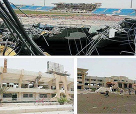 ما إن أعلن تحالف الشر بدء عدوانه على اليمن إلا وكان للمنشآت الرياضية نصيب الأسد من الغارات والقصف كدليل واضح يؤكد نواياهم الخبيثة في استهداف الشباب والرياضيين بشكل واضح وصريح.