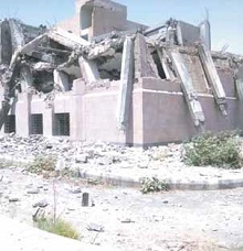 مبنى الاتحاد العام لكرة القدم في مدينة الثورة الرياضية الذي تضرر بشكل غير مباشر من القصف ما نتج عن ذلك تدمير جزئي للمبنى وتوقف النشاط في مبنى الاتحاد.