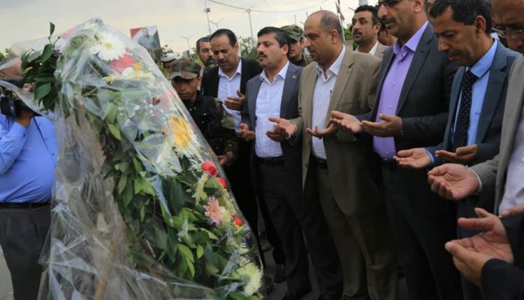 وضع وزير الاتصالات وتقنية المعلومات المهندس مسفر عبد الله النمير اليوم، أكليلا من الزهور على ضريح الرئيس الشهيد صالح الصماد ورفاقه الشهداء بميدان السبعين.