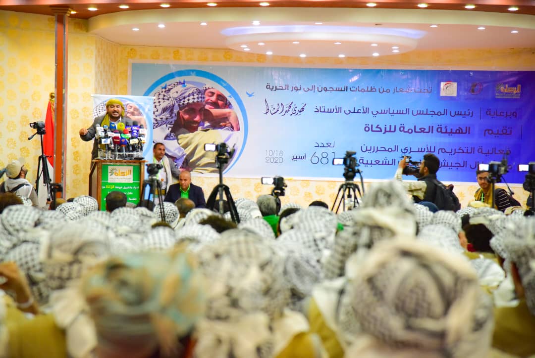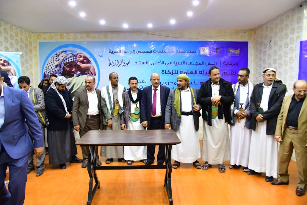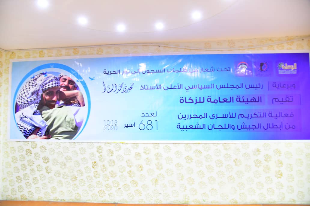 كرمت الهيئة العامة للزكاة اليوم الأسرى المحررين من أبطال الجيش واللجان الشعبية البالغ عددهم 671 أسيراً ، بالتنسيق مع اللجنة الوطنية لشؤون الأسرى ومؤسسة أحرار اليمن.