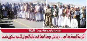 مجيديع : الشرف والنخوة يتطلبان اليوم من كل يمني أن يحمل سلاحه ويتوجه الى جبهات العزة والكرامة القصاد : الجريمة لا تمثل أبناء مارب لا من قريب ولا من بعيد وسنأخذ بحق النساء المختطفات الشريف : ما ارتكبه المرتزقة من جرائم هتك الأعراض وقتل النفس البريئة كفيل بتحرير مارب بأسرع وقت نمران : اختطاف … تابع قراءة مشائخ وأعيان محافظة مارب لـ “الثورة “: الكرامة اليمنية خط أحمر .. وردنا على جريمة اختطاف مرتزقة العدوان للنساء سيكون حاسماً