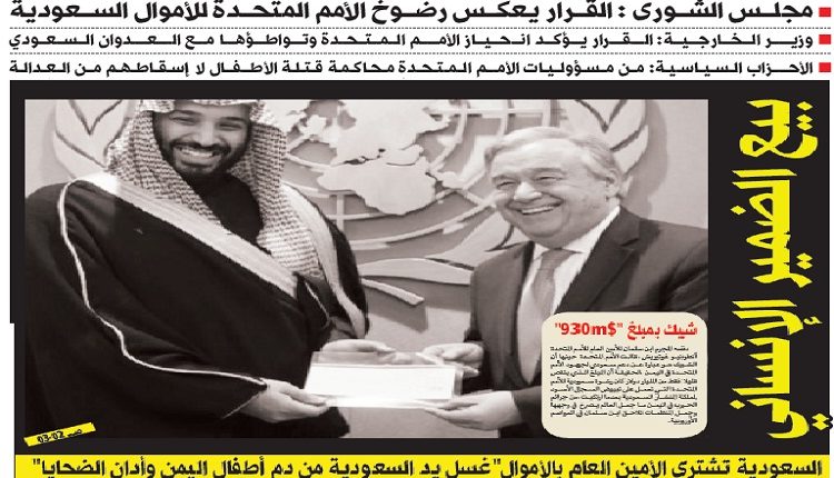 السعودية تشتري الأمم المتحدة بالأموال غسلت يد السعودية من دم أطفال اليمن وأدانت الضحايا اليمنيين
