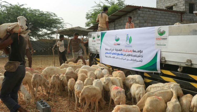 دشنت مؤسسة يمن ثبات التنموية بمحافظة الحديدة اليوم المرحلة الأولى من مشروع التمكين الإقتصادي بتوزيع عدد من رؤوس الأغنام لأسر المرابطين بالجبهات من أبناء المحافظة.