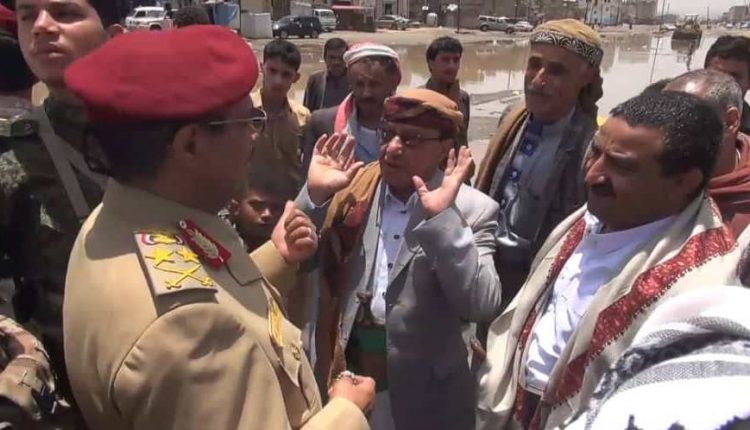 ووجه الفريق السامعي بسرعة توفير المعدات اللازمة لمواصلة رفع المخلفات من مجاري السيول بالمناطق المتضررة لتلافي أي أضرار مستقبلاً.