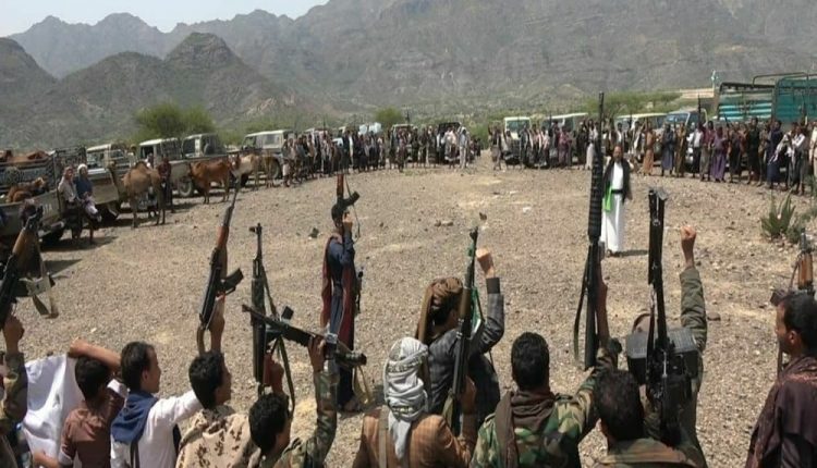 تعز.. أهالي الشهداء في ماوية يسيرون قافلة غذائية للمرابطين في الجبهات