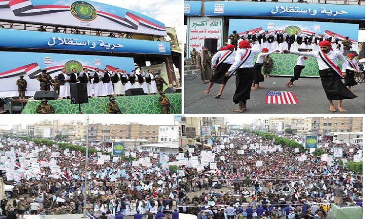 كانت صورة مهيبة لهذه الحشود بمشاركة الكبار والصغار وهي تؤكد مواصلة التصدي للعدوان بروح ثورية وهوية إيمانية حتى نيل الاستقلال التام، وبدء الدعم والتأييد المطلق للسيد القائد عبدالملك بدر الدين الحوثي في توجهاته الوطنية الصادقة في استمرار الثورة لبلوغ كل اهدافها في العزة والكرامة والحرية وأن لاتفريط في هذه المبادئ والقيم النبيلة السامية التي وضعتها ثورة الـ21سبتمبر المباركة.