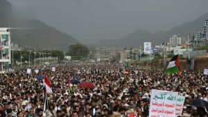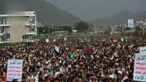 وشهدت مديريات المربع الشمالي “يريم، السدة، النادرة، والرضمة”، 35 مسيرة حاشدة، أكد المشاركون فيها، وقوفهم الثابت إسنادًا للقضية الفلسطينية ودعمًا لعمليات الأبطال في غزة.