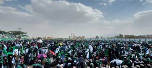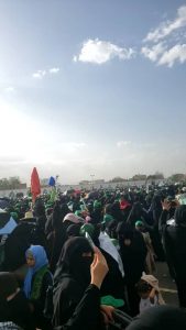 اكتضت ساحة الكلية الحربية بصنعاء بمئات الآلاف من الحشود النسائية التي جاءت من كل مختلف مناطق أمانة العاصمة للاحتفال بذكرى المولد النبوي الشريف عليه وعلى آله أفضل الصلاة والتسليم. في مشهد روحاني تعتليه أصواتهن الملبية لرسول الله ومنشدة طلع البدر علينا. في ظل استقبال مهيب لضيفات رسول الله بأنواع مختلفة من الحلوى والشذاب والرياحين والبخور وماء الورد كعيد أقرته اليمنيات بأنه أول الأعياد المقدسة