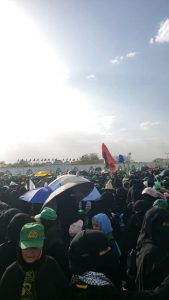 موضحة بأن الحضور النسائي اليوم في الساحة المركزية لا مثيل له من الزخم والحشد مقارنة بالأعوام السابقة.