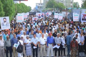 وخلال المسيرة التي تقدمها رئيس جامعة الحديدة، الأستاذ الدكتور محمد أحمد الأهدل، نوابه وعمداء الكليات والمراكز التعليمية، و الأكاديميي و موظفين وطلاب الجامعة والمعاهد. ورفع المشاركون أعلام اليمن وفلسطين، مرددين شعارات تندد بجرائم الاحتلال وبالصمت العربي والدولي تجاه ما يتعرض له الشعب الفلسطيني من قتل وتجويع ممنهج، العدو الصهيوني.
