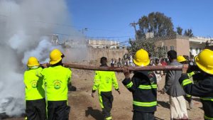 نفذ منتسبو فرع الهيئة العامة للأراضي والمساحة والتخطيط العمراني بمحافظة ذمار، اليوم، تطبيقًا عمليًا حول أساليب الدفاع المدني وإخماد الحرائق وإجلاء الضحايا.