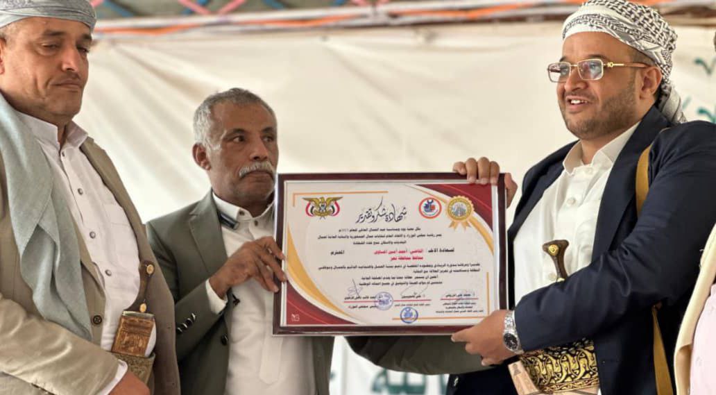 وخلال التكريم عبر رئيس النقابة العامة محمد المرزوقي عن الشكر للقائم بأعمال محافظ تعز على دعمه المتواصل واهتمامه بأوضاع عمال النظافة.