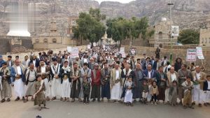 وردد المشاركون في المسيرات التي تقدمها وكلاء المحافظة وقيادات محلية وتنفيذية وأمنية بمديريات شبام كوكبان والطويلة والرجم والمدينة والخبت وبني سعد وحفاش وملحان الهتافات المنددة باستمرار المجازر الصهيونية بحق أبناء غزة في ظل صمت المجتمع الدولي.