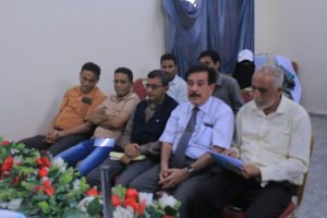 تكونت لجنة المناقشة والتقييم، من نائب رئيس الجامعة للشؤون الأكاديمية الدكتور عزالدين معاد، وعميد الكلية، والدكتور محضار الشهاري، ونائب عميد كلية علوم وهندسة الحاسوب الدكتور سالم الوصابي، ورئيسة قسم رياض الأطفال الدكتورة خديجة مقبول ورئيسة قسم الإرشاد النفسي الدكتورة أفراح العريقي.