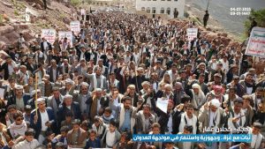 وأعلنت الجماهير الجهوزية والاستنفار في مواجهة العدوان وأدواته ومرتزقته والاستعداد لتقديم التضحيات انتصارا للمظلومين والمستضعفين ورفع راية الإسلام.
