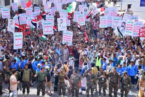 مجددا في كلمة المناسبة، استمرار الشعب اليمني في مساندة غزة، والولاء والعهد لأعلام الهدى ومنهم الإمام الحسين عليه السلام، والمضي على نهجهم في مواجهة طغاة العصر من قوى الاستكبار العالمي بقيادة أمريكا واللوبي الصهيوني وعملائهم حتى تحقيق النصر.