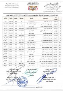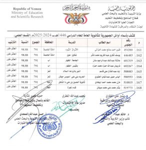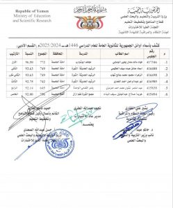 ” الثورة نت” تنشر أسماء أوائل الجمهورية في القسم العلمي والأدبي والإنجليزي.