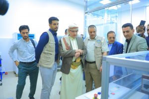وطاف وزير الاقتصاد والصناعة والاستثمار باقسام المختبر واستمع من رئيس الهيئة اليمنية للمواصفات والمقاييس وضبط الجودة سام احمد البشيري إلى شرح حول تجهيزات المختبرات والخدمات التي يقدمها المركز في فحص مختلف الأجهزة الكهربائية والطاقة المتجددة والتوصيلات الكهربائية.