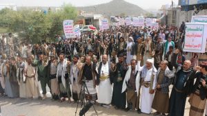 وجدد بيان صادر عن مسيرات تعز التأكيد على وقوف الشعب اليمني في مواجهة جرائم ومخططات العدو الصهيوني والأمريكي في المنطقة وفي مقدمة تلك المخططات تكريس معادلة الاستباحة لشعوب المنطقة، وأن على الأعداء أن يعلموا بأن الشعب اليمني – بحول الله وقوته – لن يخضع ولن يخنع، وسيتحرك دون خوف، ولا كلل، ولا ملل، لمواجهة كل مخططاتهم.