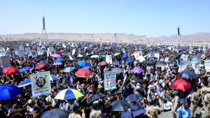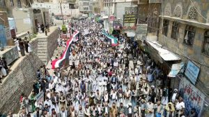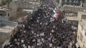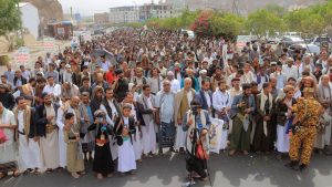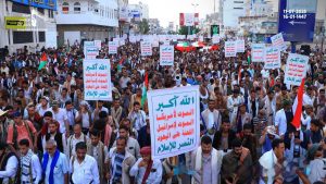 وفي الجوف احتشد أبناء المحافظة في 49 مسيرة جماهيرية في مركز المحافظة والمديريات تحت شعار “مستمرون في نصرة غزة ومواجهة الاستباحة الصهيونية للأمة”.
