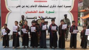 وفي المسيرة بحضور قيادات محلية وتنفيذية وتعبوية رفع المشاركون الشعارات المعبرة عن المناسبة والتأكيد على مواصلة السير على درب الإمام زيد عليه السلام في مواجهة الطغاة والمستكبرين والتصدي لهم.