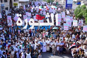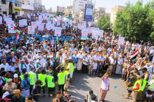 وانطلقت المسيرة المركزية من شارع الميناء بمدينة الحديدة، فيما توزعت بقية المسيرات على مختلف العزل والقرى والمناطق في بمديريات الجنوبي والشرقي والشمالي من المحافظة.