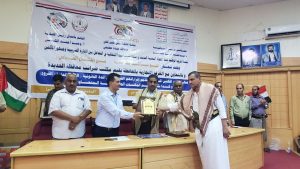 وخلال الحفل بحضور مدير عام البنك المركزي، فايز عبدالله حجاش. ومدير التوثيق بمحكمة استئناف المحافظة، محمد أبكر. ونائب الغرفة التجارية، عبدالإله علي سعيد، تم تكريم المكلفين المبادرين بتقديم إقراراتهم الضريبية. والجهات الحكومية المتعاونة.