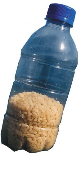 وتقوم الفكرة على ملء زجاجات مياه فارغة، سعة لتر أو لترين، بكيلوغرام من الأرز أو العدس أو غيره من البقوليات الجافة، ثم إغلاقها بإحكام وقذفها في البحر من سواحل الدول المطلة على المتوسط، مثل مصر، ليبيا، تونس، الجزائر، أو المغرب، على أمل أن تحملها التيارات البحرية إلى شواطئ غزة.
