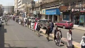 وجاب المشاركون في المسير، عددًا من الشوارع والأحياء، رافعين العلمين اليمني والفلسطيني وشعار البراءة من الأعداء، بمشاركة قيادات محلية وتنفيذية ومسؤولي التعبئة وخريجي دورات “طوفان الأقصى” وجهاء وعقال وشخصيات اجتماعية.