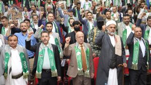 وأضاف “لا يسعنا في هذا المحفل، ونحن نتحدث عن نصرة الحق والعدل التي جاء بها الحبيب المصطفى، إلا أن نقف وقفة إجلال وإكبار للشعب اليمني وقائده الحكيم للموقف المشرف تجاه قضية الأمة المركزية “فلسطين”، ونصرة الصامدين في غزة.