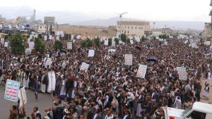 وأكد بيان صادر عن المسيرات استمرار الشعب اليمني في خروجه الأسبوعي المليوني جهادا في سبيل الله، وابتغاء لمرضاته، واستمراراً وثباتاً على الموقف المحق المساند للشعب الفلسطيني في غزة.