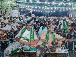 وخلال الأمسية بحضور عضو مجلس النواب، محمد علي خبال، ومدير أمن المنطقة الشمالية العقيد صادق علي مصلح، وأعضاء محكمة ونيابة الزيدية، أكد مدير أمن المديرية المقدم زين العابدين علي حسين العامري، أن ذكرى المولد النبوي الشريف تمثل محطة إيمانية وروحية متجددة يستلهم منها أبناء الشعب اليمني معاني التضحية والإيثار والصدق، وقيم العدل والتسامح التي جاء بها الرسول الأعظم.