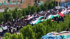 شهدت جامعة ذمار، اليوم، مسيرة طلابية وأكاديمية حاشدة، إسناداً لغزة، ودعمًا للمقاومة الفلسطينية في مواجهة العدوان الصهيوني الغاشم، وتأكيدًا على موقف الشعب اليمني الثابت تجاه القضية الفلسطينية، تحت شعار “مع جيشنا وشعبنا في مساندة غزة.. والتصدي للعدوان الصهيوني، وكل المؤامرات”.