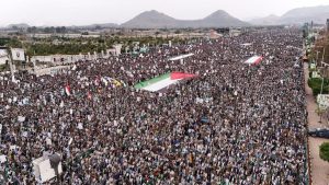 شهدت العاصمة صنعاء اليوم، مسيرة مليونية تحت شعار “ثابتون مع غزة.. لا نخشى التهديدات ولا ترهبنا المؤامرات”، تأكيدًا على الموقف الثابت في نصرة الشعب الفلسطيني، وتنديدا بتخاذل الأنظمة العربية والتواطؤ الدولي تجاه جرائم الإبادة والتجويع في غزة.