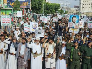 ودعا المشاركون في المسيرات، شعوب الأمة العربية والإسلامية إلى اتخاذ موقف تجاه جرائم الإبادة والتجويع بحق سكان غزة، مؤكدا أن الشعب اليمني لا يخشى التهديدات والمؤامرات، وأنه ثابت على موقفه الداعم للأشقاء غزة.