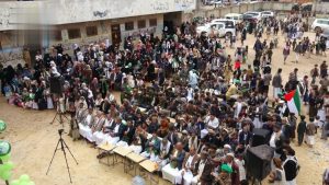 وأشاد بالدور المجتمعي لإحياء المناسبات الدينية، في تعزيز اللحمة الوطنية وغرس القيم الاصيلة في المجتمع، منوهًا بثبات أبطال القوات المسلحة اليمنية في نصرة الشعب الفلسطيني في غزة الذي يتعرض لجرائم إبادة وتجويع أمام خذلان بعض الدول العربية المطبعة مع أعداء الله ورسوله.