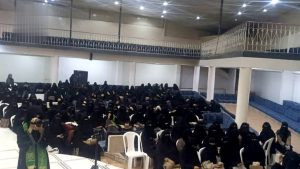 على ذات السياق نظمت الهيئة النسائية بمديرية همدان في محافظة صنعاء فعالية ثقافية بمناسبة ذكرى المولد النبوي الشريف على صاحبها وآله أفضل الصلاة والسلام .