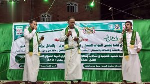 كما ألقيت كلمات أكدت تميز الشعب اليمني وتفرده بإحياء ميلاد خير خلق الله أجمعين الذي أرسله رحمة للعالمين .