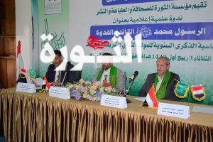 وفي الندوة التي حضرها وكيلا وزارة الإعلام لقطاعي العلاقات والإعلام الخارجي محمد منصور والسياسات والمحتوى الدكتور أحمد الشامي، اعتبر رئيس مجلس إدارة مؤسسة الثورة للصحافة والطباعة والنشر أحمد راصع، الاحتفال بهذه الذكرى محطة للتزود من وهج الهدى النبوي والسير على نهجه والتزود من سلوكه ومبادئه وأخلاقه في الصبر والثبات.