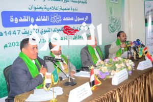 عُقدت بصنعاء اليوم ندوة علمية بعنوان “الرسول محمد صلى الله عليه وآله سلم القائد والقدوة”، نظمتها مؤسسة الثورة للصحافة والطباعة والنشر.
