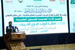 من جانبه، عبّر مدير عام العلاقات العامة والتوجيه المعنوي بوزارة الداخلية العميد حسن الهادي عن فخر الشعب اليمني بكونه “أكثر شعب يحيي هذه المناسبة ويتشرف بها”، مجدداً العهد بالولاء والنصرة للنبي محمد صلى الله عليه وآله وسلم.