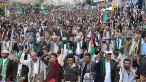 كما أكدت الحشود أن تهديدات ومؤامرات الأعداء لا ترهب الشعب اليمني ولن تثنيه عن موقفه الديني والأخلاقي والإنساني في نصرة ومساندة الأشقاء في غزة.