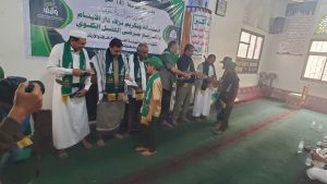 واختتم الحفل بقيام وكيل المحافظة ومدير الأوقاف والإرشاد ومدير الاتصالات علي هبه مكي بتكريم الأيتام٠و مرضى الفشل الكلوي بمبالغ مالية.