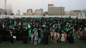 تزيّنت ساحات الاحتفال بآلاف المشاركات من مديريات الميناء والحوك والحالي والمربع الجنوبي، وارتفعت الأعلام الخضراء واللافتات المحمدية، لترسم مشهداً روحياً معبرًا عن عظمة المناسبة ومقام الرسول الأعظم.