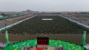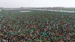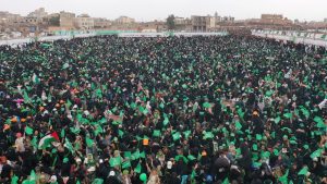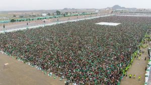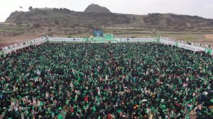 حيث اكتظت ساحتي الرسول الأعظم بجامعة ذمار والشوارع المجاورة والمحيطة به بحشود جماهيرية غير مسبوقة، ومحصوبة بوصاب السافل لأبناء وصابين، فيما احتشد القطاع النسائي في ساحة هران، تدفقوا إليهما من عتمة وآنس والحداء وعنس، ومن كل حدب وصوب… وشكلوا طوفانا بشريا هادرا، ورسموا لوحة إيمانية بديعة، عكست الروحانية والمحبة الصادقة التي يتحلى بها أبناء ذمار في حضرة الرسول الأعظم محمد -صلى الله عليه وآله وسلم.