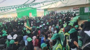 ورفعت المشاركات في الفعالية التي أقيمت بساحة مدرسة “السعموم” بمديرية الزاهر، اللافتات المعبرة عن التعظيم والاعتزاز بإحياء ذكرى مولد خاتم الأنبياء، ورددن هتافات الولاء والانتماء للرسول الأعظم صلى الله عليه وآله وسلم.
