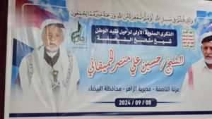 نظّم المجلس المحلي والتعبئة بمديرية الزاهر بمحافظة البيضاء، اليوم فعالية خطابية بالذكرى السنوية الأولى لرحيل فقيد الوطن شيخ مشايخ الناصفة حسين علي الحميقاني.